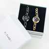 Sun&Moon Touch Bracelets with Figaro Chain(Black+Gold)